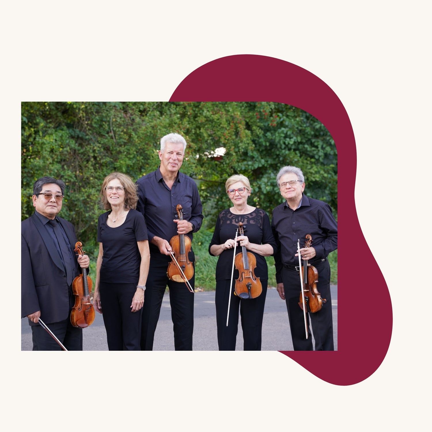 Ein außergewöhnliches Ensemble mit internationalem Hintergrund: Vier Virtuosen an der Violine und eine erfahrene Pianistin bringen klassische Werke mit Tiefe & Ausdruck auf die Bühne. Das Quartett wird gebildet aus renommierten Solisten aus Deutschland, Japan & Rumänien – darunter Musikerinnen & Musiker mit Stationen in London, Dortmund, Mannheim und Hagen.